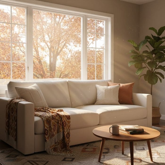 It is the same couch I sit on all year, the same cushions I fluff absentmindedly, but autumn light has a way of rewriting familiar things, and suddenly the whole room feels like it has lowered its voice.