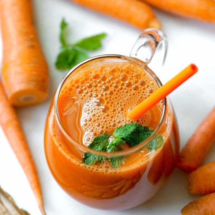 Carrots contain beta carotene while oranges provide vitamin C, making the drink feel nutritious and refreshing.