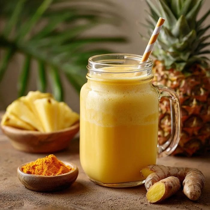Pineapple contains enzymes that help support digestion, while turmeric is widely known for its antioxidant properties.