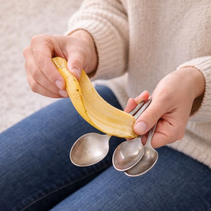 Instead of using strong chemical polish, the inside of a banana peel can gently clean the metal.
