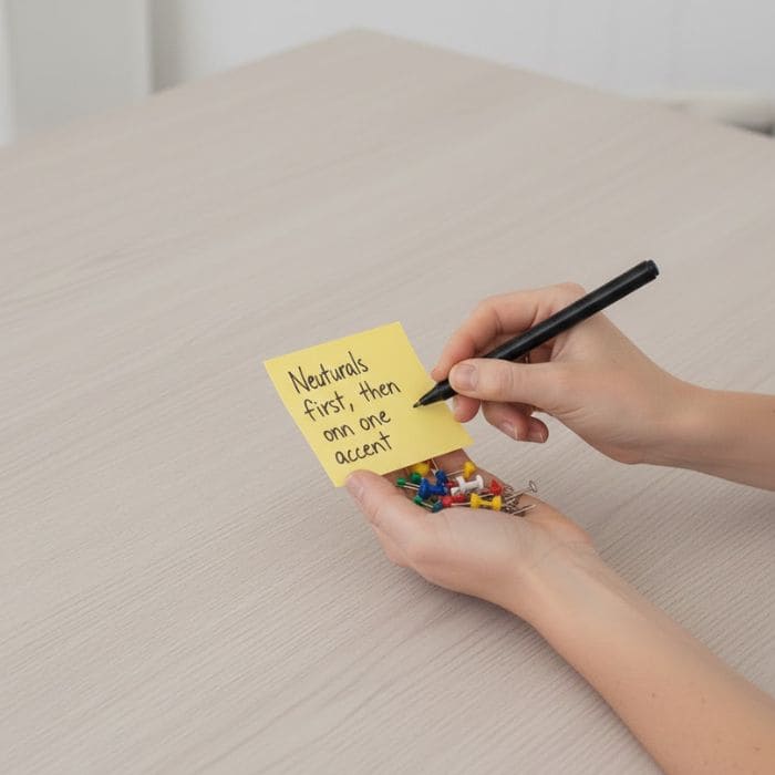 I pinned a little card that says, “Neutrals first, then one accent.” It is simple, but it keeps me from overcomplicating everything when I am low on energy.