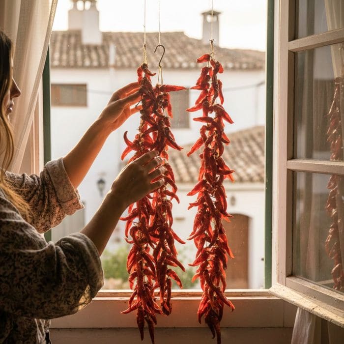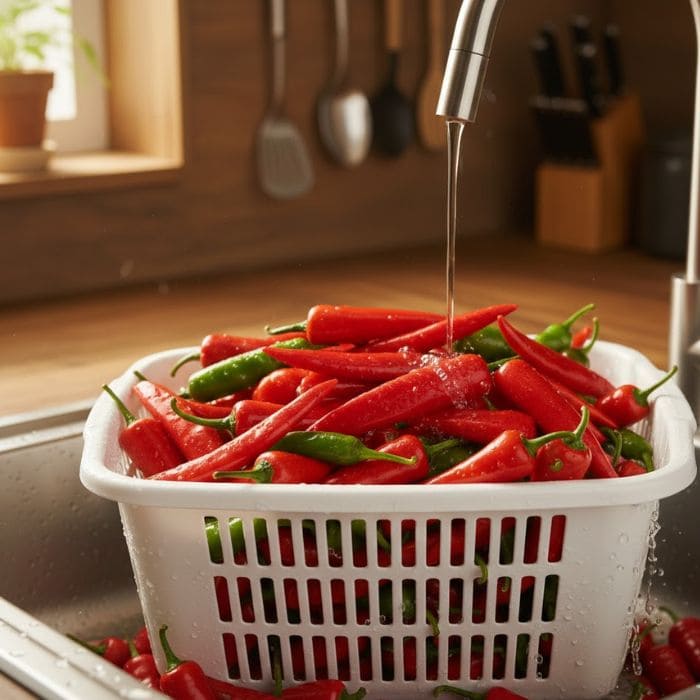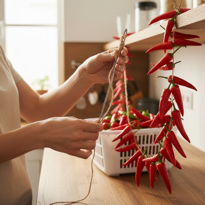 For small hot peppers, I follow a tip used in extension guidance: I make a small slit near the stem area to help moisture escape during air drying, which is especially helpful in places where humidity can slow the process down.
