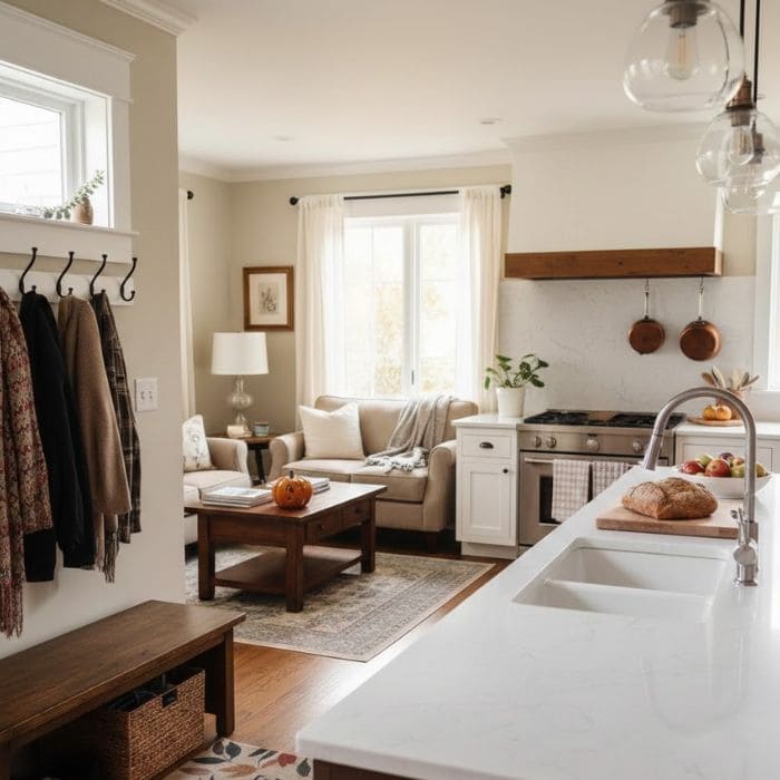 If you want a budget-friendly touch that looks expensive, a basket by the door with a folded throw or a few small pumpkins does more than a lot of “decor items,” because it looks like real life, not like a store display.