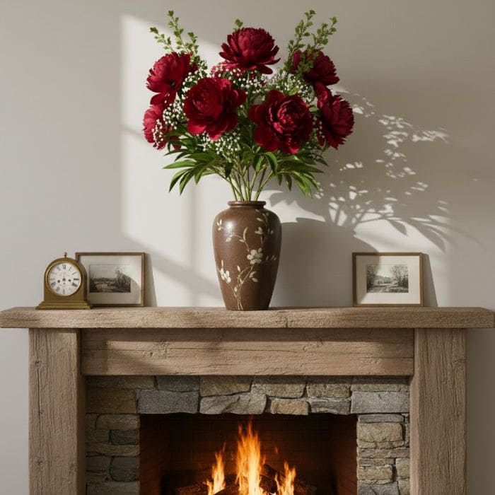 A tall vase balances big furniture beautifully. If you have a sofa that feels long or a fireplace that dominates the room, branches soften those hard lines and add a vertical element that makes everything feel more composed.