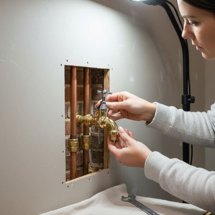 I chose a spot where the interior plumbing access felt straightforward, and where I could see what I was doing without turning it into a full open the wall kind of day.