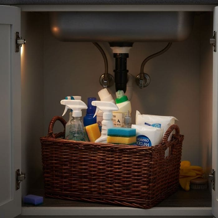 6. A Cleaning Basket Under the Sink That Keeps Products from Falling Over
